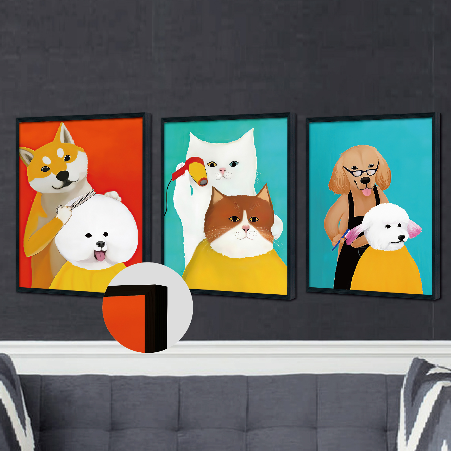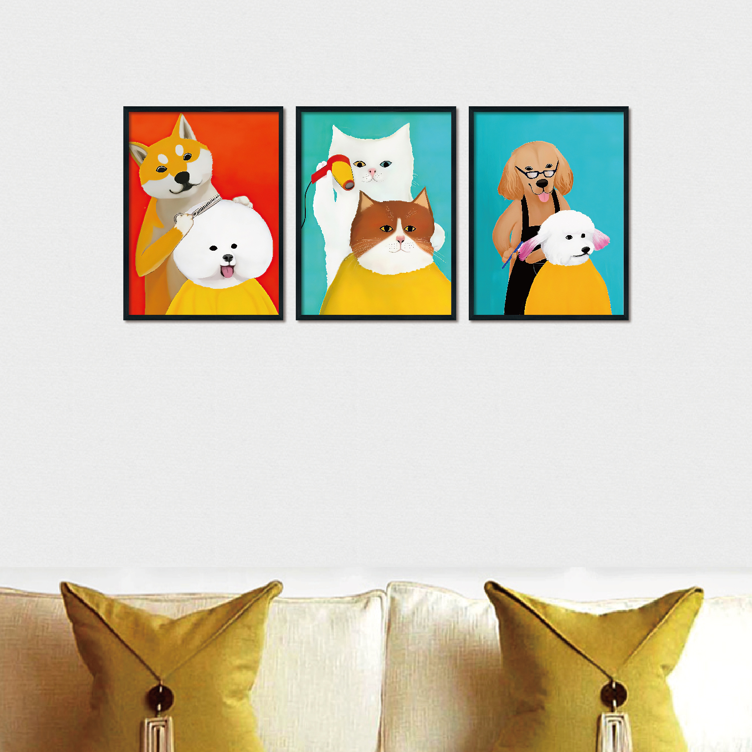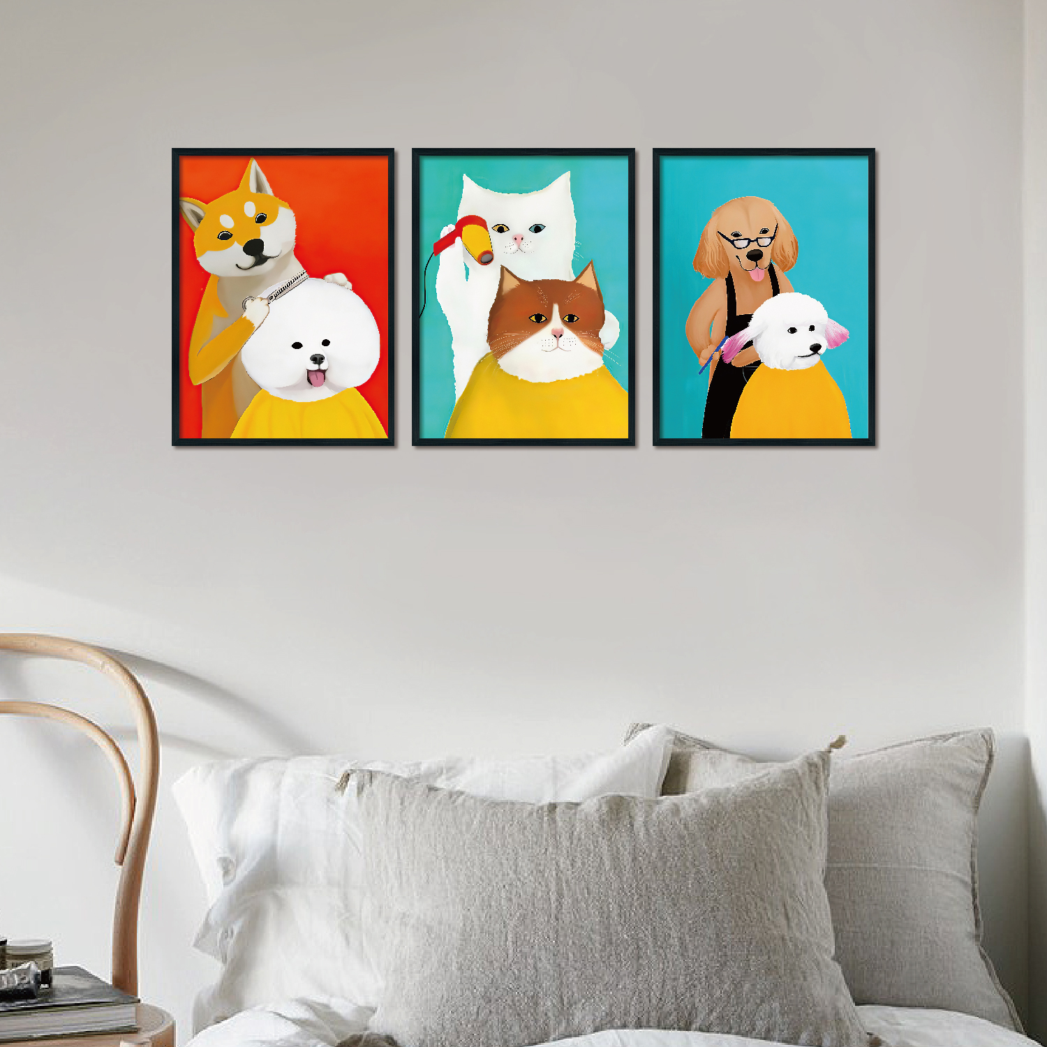 Triplet Wood Frame Decorative Painting (Animal Haircut)