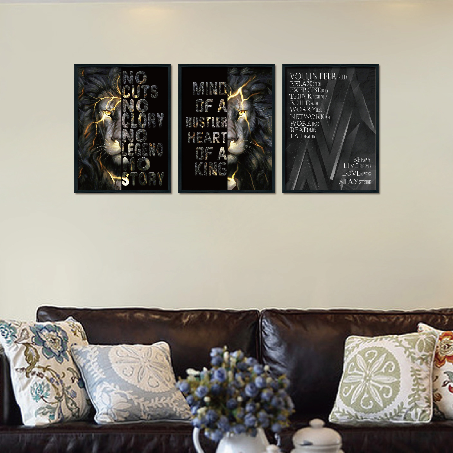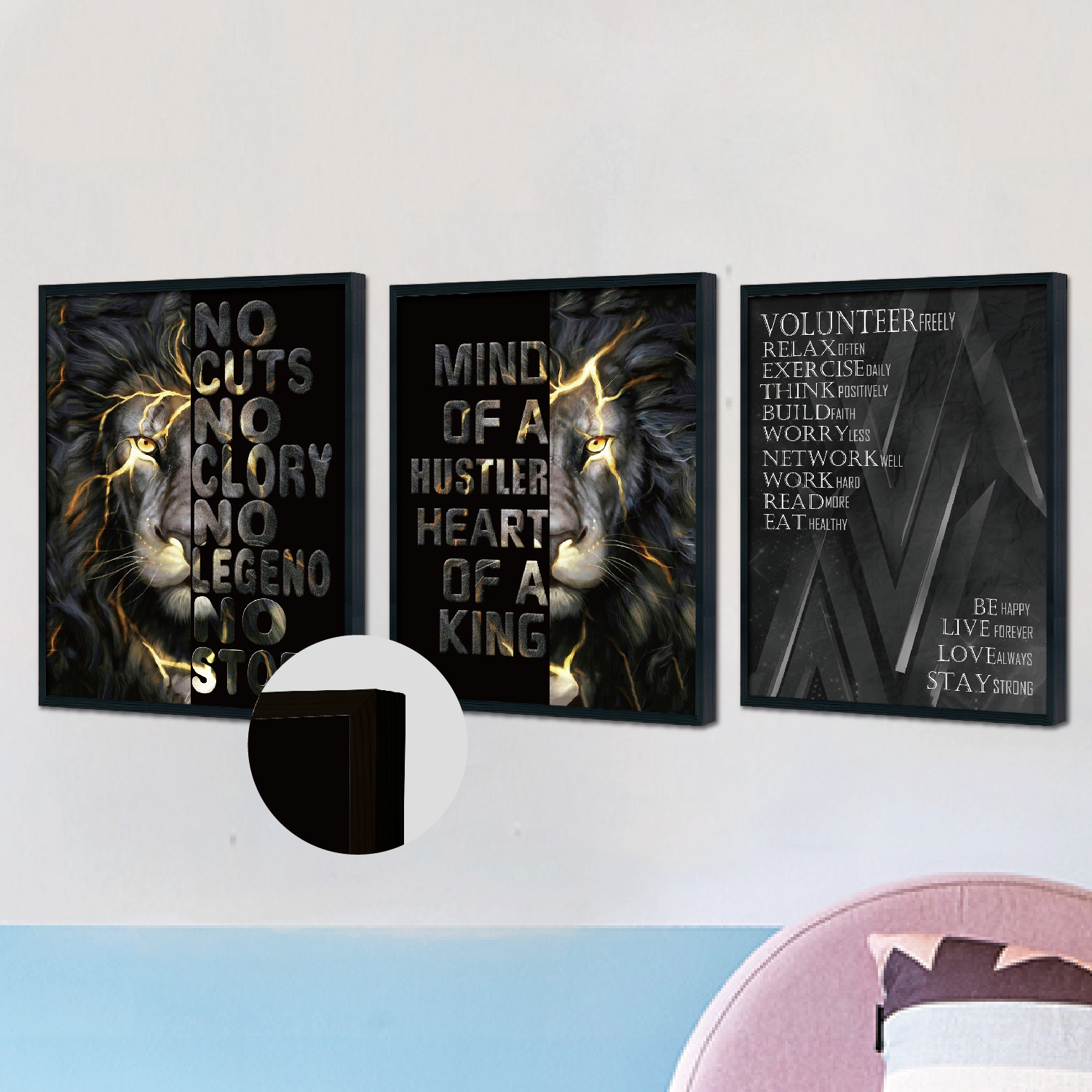 Triplet Wood Frame Decorative Painting (Lion)