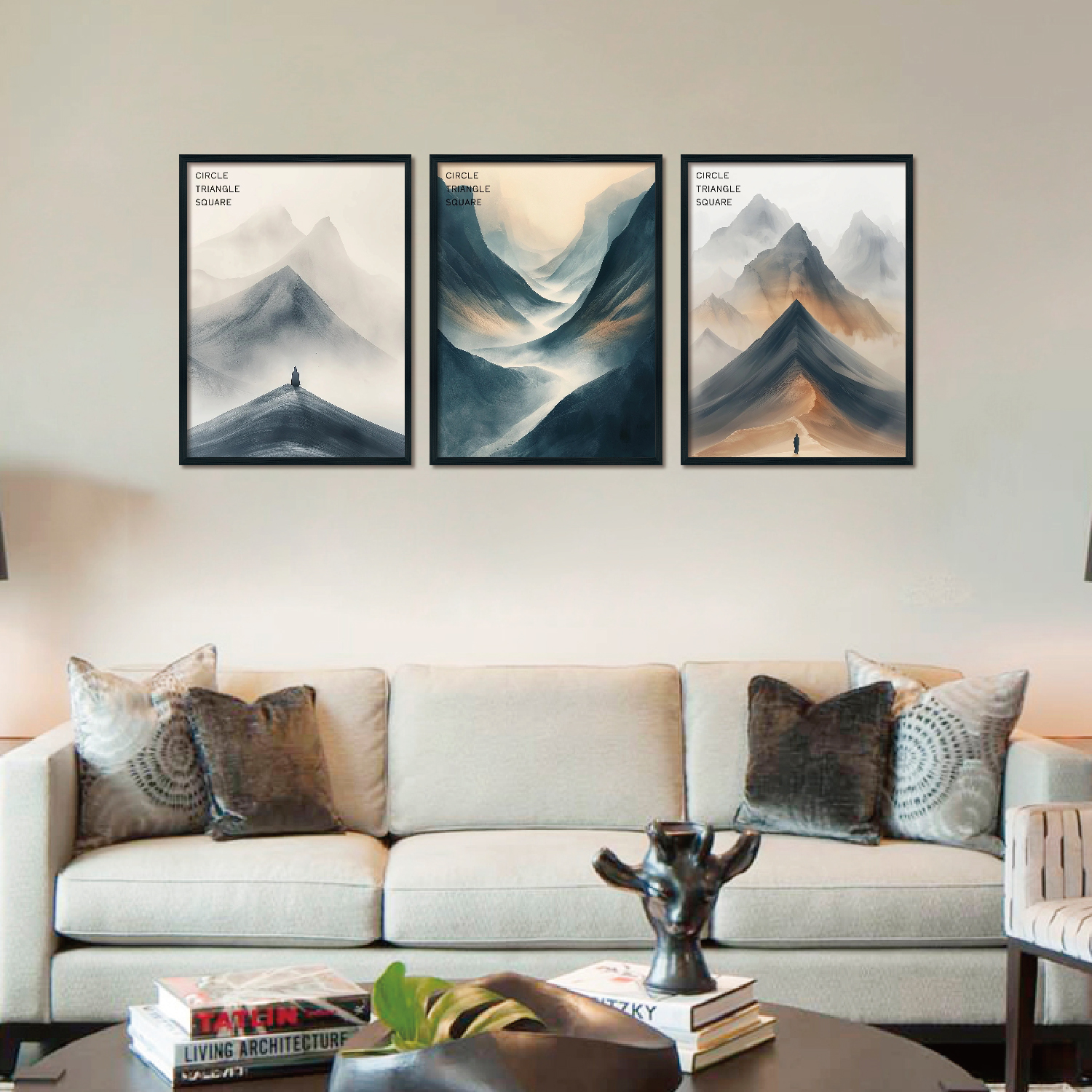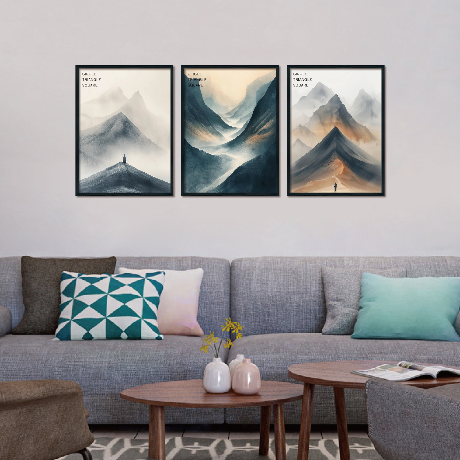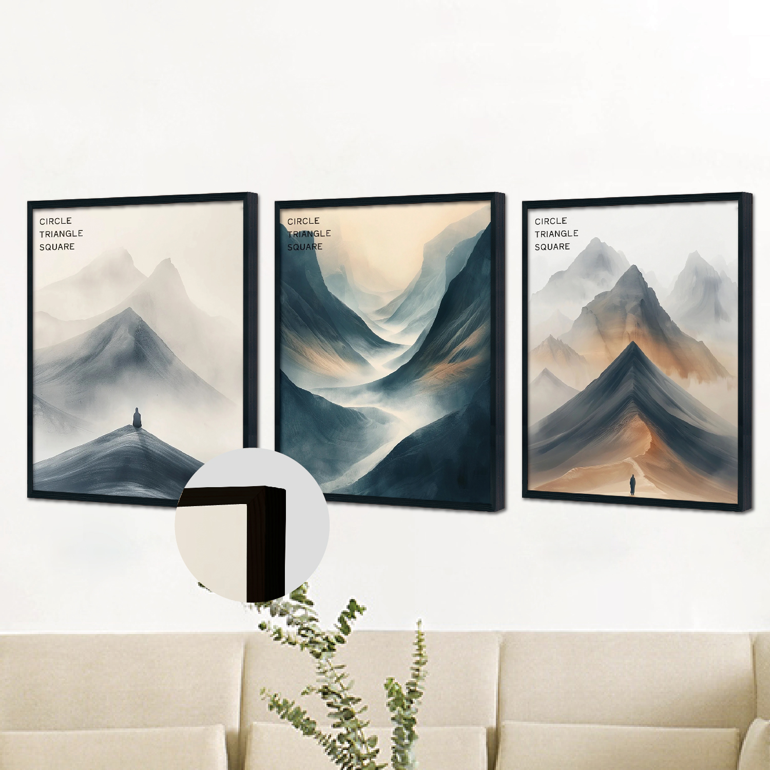 Triplet Wood Frame Decorative Painting (Moshan)