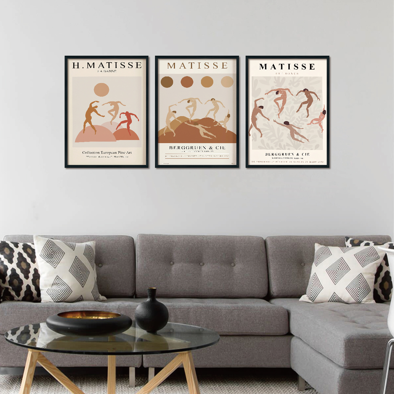 Triplet wood Frame decorative painting (MATISSE khaki)