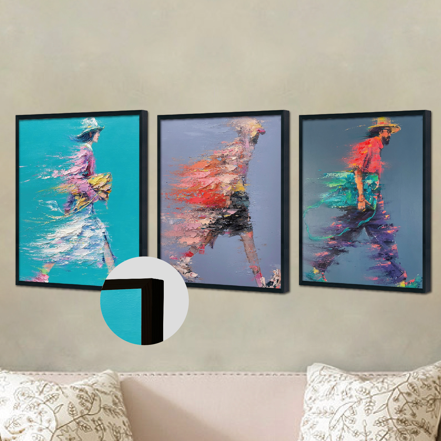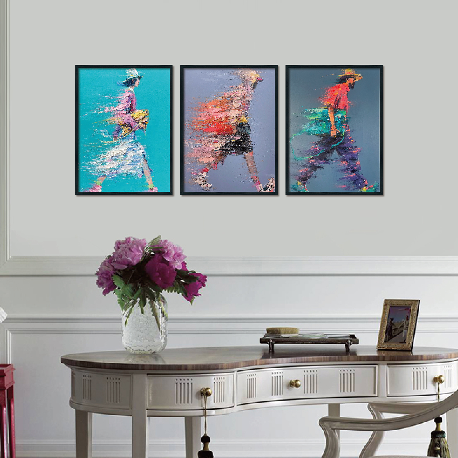 Triplet wood frame decorative painting (imaginary figure)