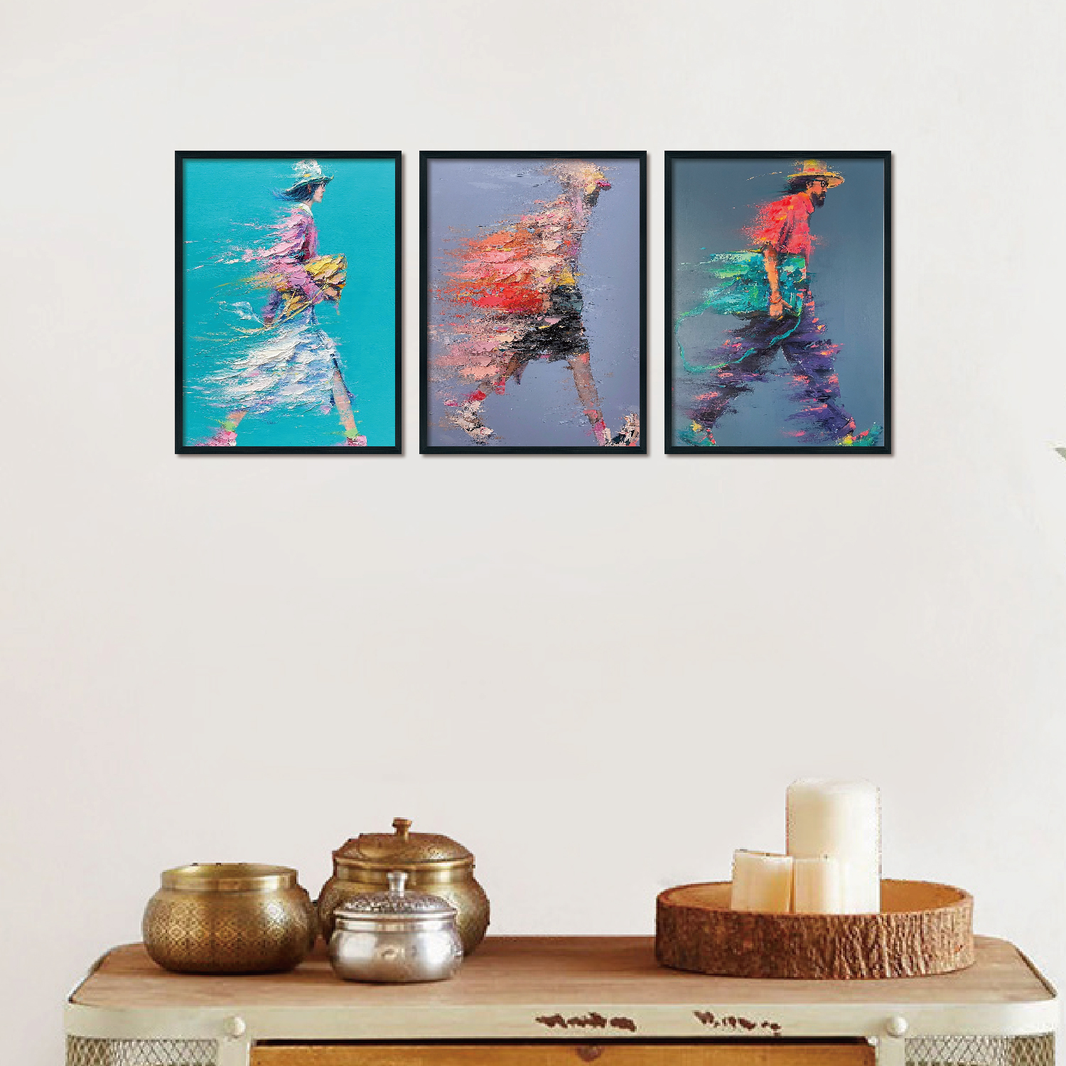 Triplet wood frame decorative painting (imaginary figure)